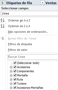 Al seleccionar para filtrar vemos que existe otro valor, «Componentes» que no habríamos tenido en cuenta, de no ser por esta acción.
