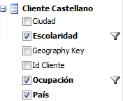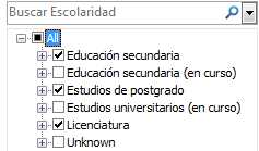 Si seleccionamos, por ejemplo Escolaridad, vemos los valores posibles y los filtrados.
