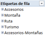 Desde la jerarquía de atributo, o lo que es lo mismo, el campo de tabla dinámica podemos ver los valores al seleccionar el pequeño botón que se activa a la derecha de el campo, el botón nos da la posibilidad de filtrar y buscar y según nuestras necesidades, examinar los posibles valores. En esta imagen vemos que se han seleccionado 3 elementos, y se han activado filtro para dos de ellos.