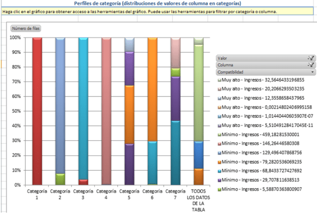 En el segundo caso combinamos Valor, Columna y compatibilidad en el eje leyenda mientras mostramos las categorías en el eje categorías.