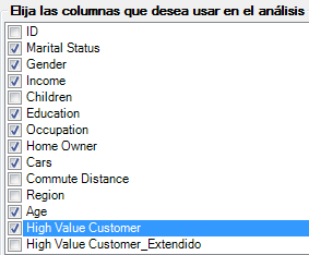 Veamos hoy qué ocurre si cambiamos las columnas a tener en cuenta, ya que también podemos personalizar los resultados especificando las columnas con más probabilidad de ser útiles en la predicción de los valores de los datos que faltan, podríamos encontrarnos con que existe un efecto causal entre una columna y la columna con valores ausentes, por lo que podríamos desear anular su selección para obtener mejores resultados. Para mostrarlo voy a quitar precisamente las 3 columnas de las que tenían más influencia en el resultado anterior y son: Children, Commute Distance y Region.