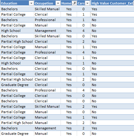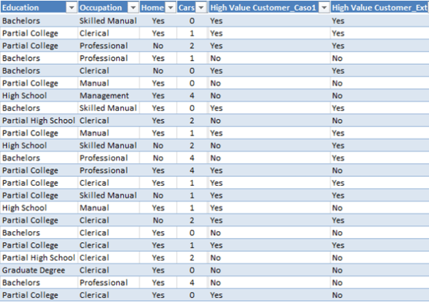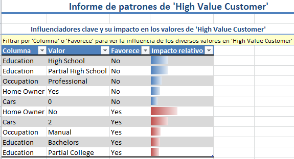 Y en esta última tabla nos quedaremos con las columnas que son influenciadores clave: Education, Occupation, Home Owner y Cars.