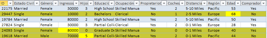Para finalizar, veamos la tabla de datos originales donde aparecen resaltadas las anomalías.