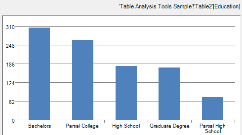 Para los datos discretos se ofrecen menos opciones de exploración y procesamiento que para los continuos. Con los discretos, apenas podemos ver el gráfico de barras y copiar el gráfico a una hoja de Excel, tal cual está. Para copiar disponemos de un pequeño botón de comando en la esquina inferior derecha con el icono acostumbrado para copiar.