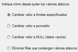 En el paso Tratamiento de valores atípicos tenemos que indicar cómo deseamos cambiar estos valores.