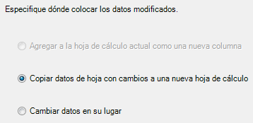 Como vimos para datos discretos, el paso final será Seleccionar destino, que es igual que en discreto, recordando que paea Eliminar filas … no es posible utilizar la misma localización de los datos y mantener el resto de columnas … en fin que o los reemplazamos o buscamos una nueva hoja de cálculo.