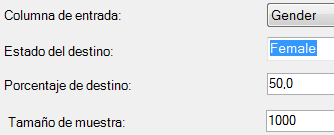 Según esta imagen estamos pidiendo 1000 registros de los cuales 500 sean Mujeres. Esto no va a ser posible, recordemos la distribución de los valores para esta columna: 509 para Male y apenas 491 para Female. Recordemos que este recuento lo tenemos cómodamente en el Asistente Cambiar etiquetas que hemos analizado hace muy poco.