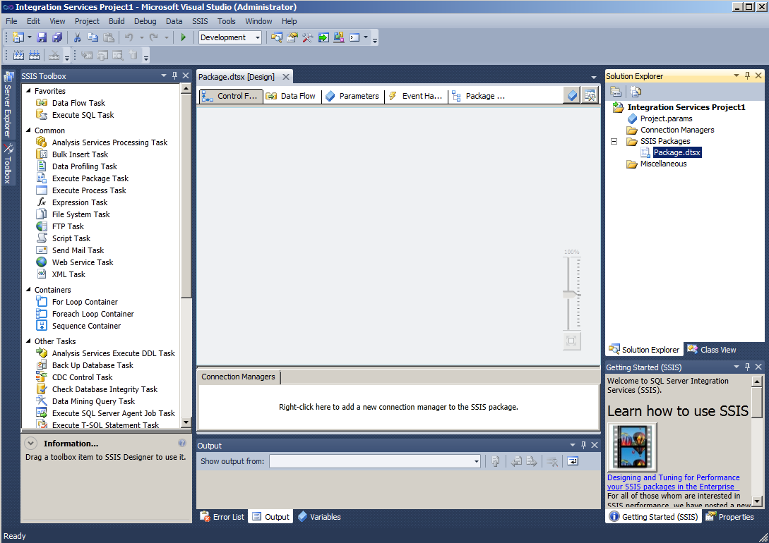En este blog he dedicado mucho tiempo y esfuerzo a SSIS, y lo que falta :), por lo que no es de extrañar que haya decidido empezar mis andanzas de SQL Server 2012 RC0 precisamente por aquí.