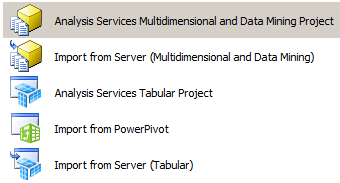 Para Analysis Services, nos encontramos con más sorpresas, hay tres formas de realizar importaciones, muy bien !!!