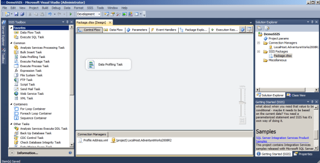 Vamos a crear hoy nuestro primer paquete, el más sencillo, utilizando SSIS 2012 RC0, que va a realizar un perfil sobre los datos de la tabla Person.Address de AdventureWorks2008R2 … lo mismo que hicimos aquí.