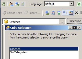 Procesamos y vamos a Examinar. En el cuadro con el nombre del cubo, a la derecha encontramos un botón con (…) indicando continuidad, los llamados ellipsis, pues al desplegarlo vemos la ventana Cube Selection, que nos permite pasarnos a la perspectiva o cubo deseados.