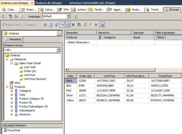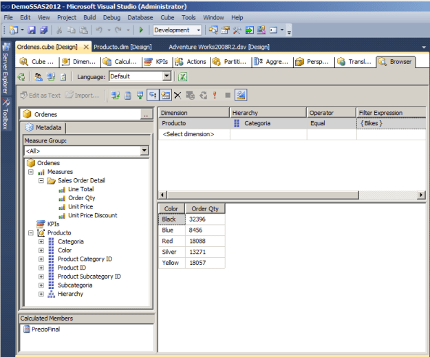 Antes hemos visto algunas novedades que aporta la versión SQL Server 2012 RC0 en cuanto a Examinar cubos OLAP dentro de las Data Tools de SQL. Hay más… hoy me detengo en dos aspectos: miembros calculados y perspectivas.