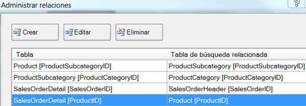 Antes nos hemos visto en la necesidad de crear una relación entre tablas de PowerPivot y no lo conseguimos. Si analizamos bien las tablas y si sobre todo, conocemos el modelo de datos, vemos que la tabla SalesOrderDetails podría servirnos de puente.