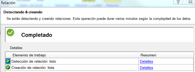 En principio pasa lo mismo, hay problemas con las relaciones, y volvemos a tener el mensaje del motor PowerPivot.