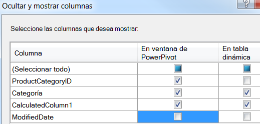 Estas columnas ocultas no se ven en la ventana PowerPivot.