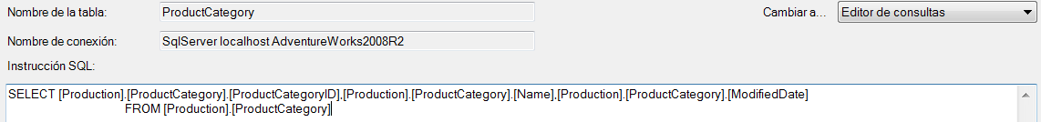 Una vez importados los datos de los distintos tipos de orígenes podemos regresar a configurar dicha importación siempre que sea necesario desde la Ventana Propiedades de tabla. El aspecto y las opciones disponibles para configurar la importación estarán en dependencia del tipo de servidor.