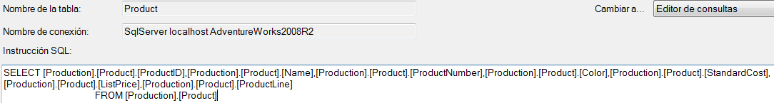 En el caso de productos que están todas las columnas tal cual existen en el flujo de datos, veamos cuál es la consulta que estamos haciendo al servidor de datos.