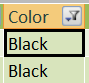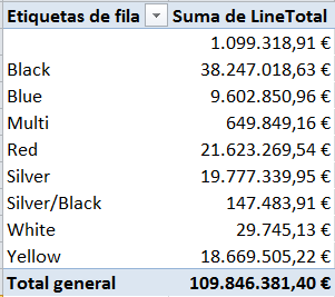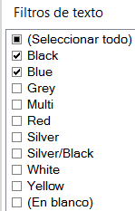 Hay 2 momentos para filtrar datos en la ventana PowerPivot y en la ventana Propiedades de tabla. Digamos que estamos haciendo un análisis de datos por la columna Color.
