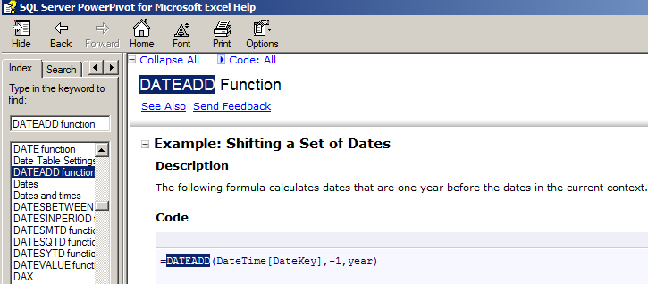 Una buena manera de iniciarse en DAX es como siempre, nuestra tecla amiga, F1 🙂 o el acceso a la ayuda