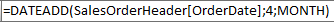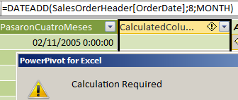 Para demostrarlo vamos a crear una nueva columna, con la misma fórmula que el caso anterior, para 8 meses en lugar de 4, es decir =DATEADD(SalesOrderHeader[OrderDate];8;MONTH)