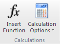 En este grupo también tenemos las Calculations options que son las opciones que regulan el momento de cálculo. Existen dos posibilidades: Automatic Calculation Mode que es el valor predeterminado y provoca que se recalculen todas las fórmulas al producirse cada cambio, por ejemplo cuando creamos una nueva columna calculada y Manual Calculation Mode, quien desactiva el automático y permite recalcular a demanda, activando para ello la opción de menú Calculate Now.