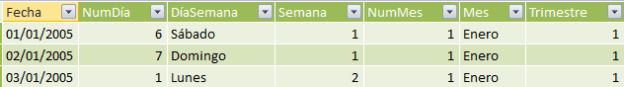 Y ya que estamos con las buenas prácticas, vamos a por otra, Utilizar una tabla maestra de fechas 🙂 eso sí !! Aquí no hay cambio de concepto con lo que hacíamos en SSAS, relacionar todas las fechas contra una única Dimensión de tiempos. Por eso preparé un juego de datos, estableceremos tantas relaciones como sean necesarias con nuestra única tabla de Tiempos.