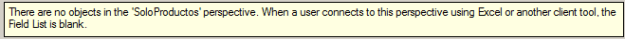Se admite una perspectiva vacía, el motor PowerPivot emite este mensaje de advertencia