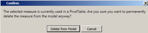 Si intentamos eliminar y es lo único que podemos hacer con esta medida, PowerPivot nos advierte
