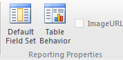 Por su parte el botón Table Behavior permite configurar el comportamiento de la tabla en cuanto a visualización de datos (Label) y el agrupamiento predetermnado (Keep using Rows). No me extiendo porque no lo puedo demostrar de momento, todos estos efectos se ven Power View.