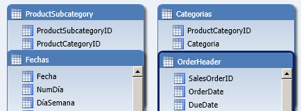 Desde la vista Datos del Modelo Tabular vemos la ficha Categorias.