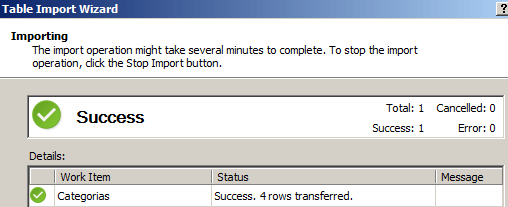 El Asistente de importación termina e informa de la cantidad de registros importados, que en este caso son apenas 4.