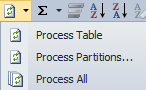 Process es como lo que vimos de Refresh en MS Excel, se conecta al origen de datos y los refresca. Esta opción tiene 3 posibilidades , que se van a activar según el tipo de conexión como hemos visto antes. Es curioso que el orden de las 3 opciones cambie entre el menú Model y la barra de herramientas del menú Model, :).