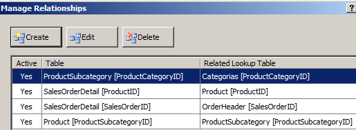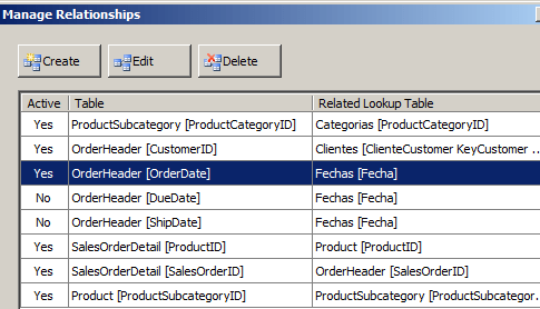 Como recordaremos de PowerPivot, las relaciones también se pueden crear y configurar desde el menú.
