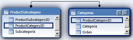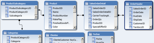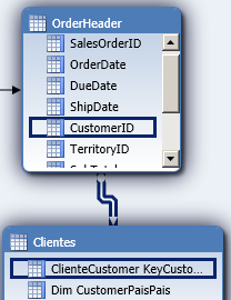 Como las columnas Clientes.ClienteCustomerKeyCustomer yOrderHeader. CustomerID representan los mismos datos en origen, podemos relacionarlas.