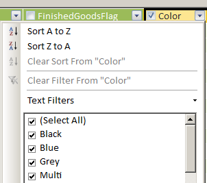 Para establecer filtros basta con seleccionar el indicador que tenemos en la esquina superior izquierda de la columna y escoger los elementos que deseamos mantener/quitar como se ve en esta figura.
