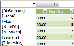 Es hora de seleccionar la columna con dato tipo Fecha para que se pueda obtener el resultado esperado. Podemos escribir directamente el nombre de la columna, seleccionarla empleando Intellisense, que veremos en otro momento, o seleccionar la columna entre las existentes como muestra la imagen