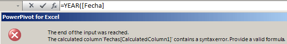 Tal y como está no nos valdría, para demostrarlo podemos oprimir la tecla Enter o utilizar el comando para verificación de sintaxis de expresiones, que aparece en la barra de opciones para expresiones, como nos ha faltado el paréntesis final, tenemos un error que se muestra a continuación.