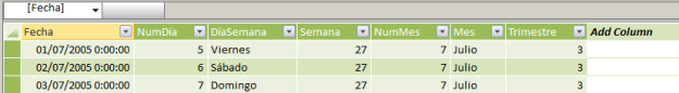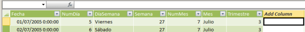 Desde la ventana PowerPivot vista Datos seleccionamos la tabla Fechas