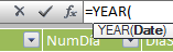 El siguiente comando nos permite activar la ventana para Insertar funciones, cuya utilidad vimos antes. Como se trata de definir el Año vamos a aprovechar el conocimiento de Excel y buscar YEAR dentro de las funciones de Fecha y Hora a ver si está