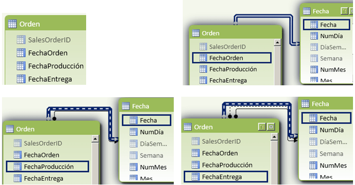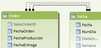 Esta problemática se complica si queremos obtener los datos por las tres fechas al mismo tiempo, sin estar cambiando la relación activa, es un escenario natural que necesitemos obtener el total de las órdenes por las tres fechas en una misma tabla.