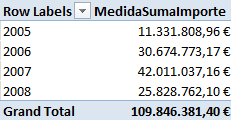 Si nos vamos a la tabla dinámica y actualizamos, tenemos los datos correctos, según la relación activa. Es decir, estamos viendo los datos referidos a FechaOrden, no a ninguna de las otras fechas.