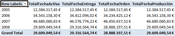 La medida TotalFechaProduccion es la que coincide con FechaActiva, el resto de los datos parece estar correcto indicando cada una de las medidas los datos que le corresponden.