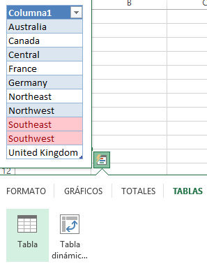 En este caso, las opciones de Formato son muy escasas, aun así, pueden ser de gran ayuda. Se trata de crear un formato que se ajuste a cualquiera de las condiciones. Veamos un ejemplo, si queremos resaltar todas aquellas regiones que contengan “south” por ejemplo, podemos hacerlo de esta forma.