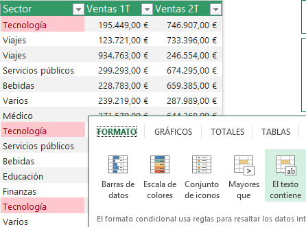 Como dije antes, permite obtener formato sobre las celdas teniendo en cuenta que se cumplan determinadas condiciones.