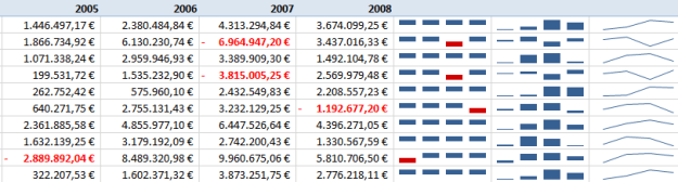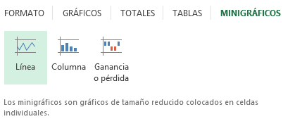 Se trata de tres tipos de gráficos: línea, columna y ganancia/pérdida, que reflejan la tendencia de los valores en cada línea, teniendo en cuenta las cifras que hay en cada columna.