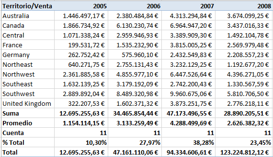Les comento un detalle, en cuanto agregamos el primer Total, fíjense que tiñó los datos de rojo y esto porque tuvo en cuenta el Formato condicional del 10% que había quedado activo.