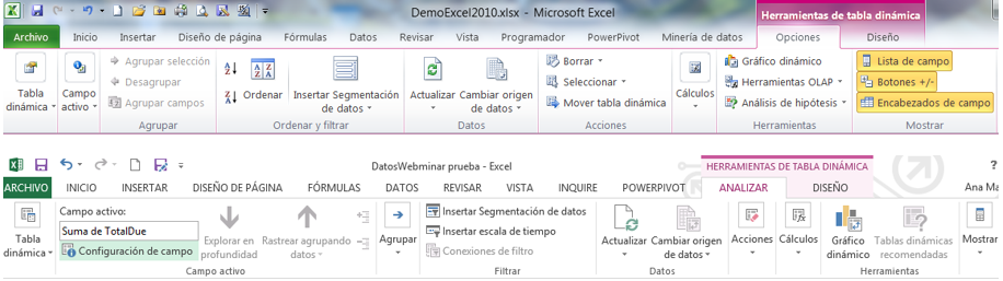 Hoy vamos a empezar a hablar de las Novedades en Tablas dinámicas en MS Office Excel 2013. Vamos a empezar viendo las opciones del menú.