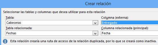 Y luego, por la columna Entregado, lo que ocurre en este caso es que si bien por una parte se pueden crear varias relaciones sobre una misma columna, en realidad sólo tendremos una relación activa. Esta dificultad queda solucionada con DAX para modelos PowerPivot. falta enlace