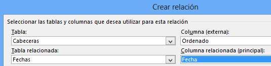La misma situación vamos a tener la tabla Fecha, así es que dejo creadas las relaciones. Primero relacionamos por la columna Ordenado, que es de tipo Fecha.