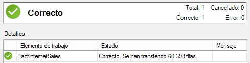 Tras definir la conexión, podemos seleccionar la o las tablas que necesitamos, en este caso, vamos a reproducir el escenario anterior y seleccionar una única tabla, FactInternetSales.